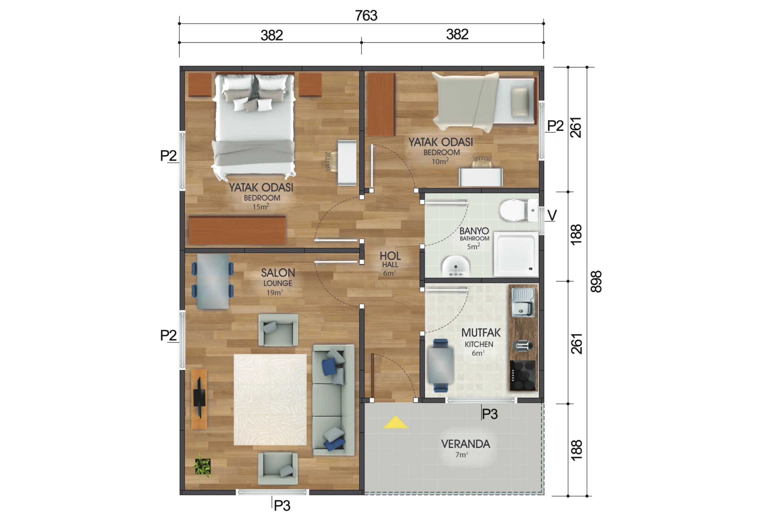 2+1 Tek Katlı Prefabrik Ev 75 m²