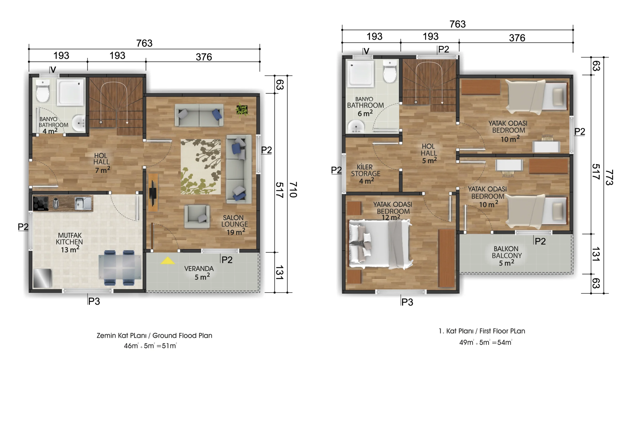 105 m² 3+1 Çift Katlı Prefabrik Ev – Modern Tasarım ve Konfor