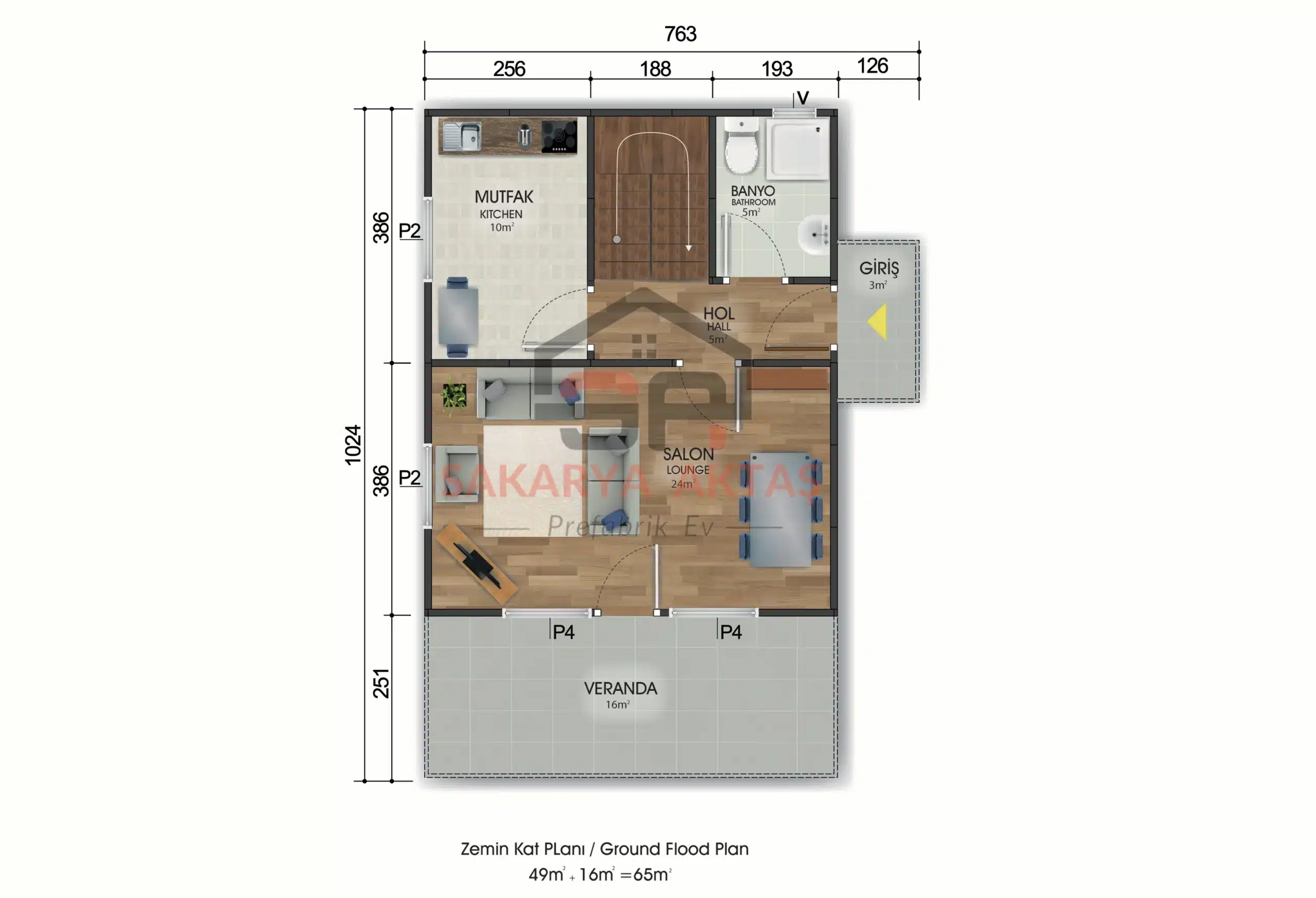 2+1 Çift Katlı Prefabrik Ev 82 m²